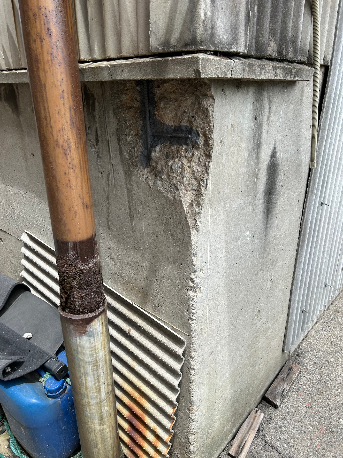 コンクリート内鉄筋爆裂と雨樋の修繕をしました